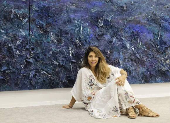 Las formas y colores de la naturaleza inspiran un trabajo en el que la contemplación del mundo natural, especialmente del océano y las tierras volcánicas, se plasma en variedad de materiales “de referencia” en su obra como la pintura acrílica, la tela de arpillera, la arena o el cartón, así como en una experimentación con otros nuevos en su creación como el metacrilato.