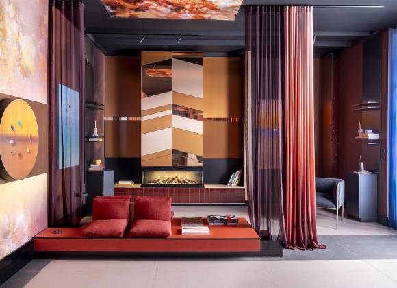 En esta fusión entre diseño, arte y tecnología, cuyo objetivo es crear un entorno sensorial pensado para nuevas formas de habitar y experimentar el retail, las superficies Broadview Materials adquieren gran protagonismo. Los materiales Homapal, Formica, Arpa® y Fenix construyen un universo propio de diseño y contrastes, reforzando la riqueza cromática del espacio a través de múltiples aplicaciones. Homapal destaca por sus acabados metálicos en tonos cálidos y oscuros (cobres, bronces y negros), combinados con efectos espejo y texturas. En contraste, Fenix introduce un acento azul intenso de acabado mate y sedoso. Por su parte, Formica equilibra la propuesta con tonos suaves y sólidos, como un rosa cálido y un azul denim, y cautiva con un negro brillante. Finalmente, Arpa muestra un rojo profundo y de carácter terroso.