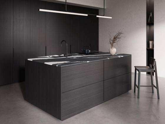 Neolith Victoria es la primera expresión de Neolith Iconic Design, una colección que incorpora una tecnología de impresión 3D de última generación y un diseño de veta pasante que fluye desde el interior y se proyecta de forma orgánica por toda la superficie, logrando una continuidad visual única. Inspirado en un exclusivo granito brasileño, combina un fondo negro profundo con vetas amplias y continuas en tono blanco que recorren la tabla con suavidad, reforzando una estética elegante de inspiración natural. Su espesor de 20 mm y el acabado Slate lo convierten en una opción idónea para encimeras de cocina, mesas y mobiliario.