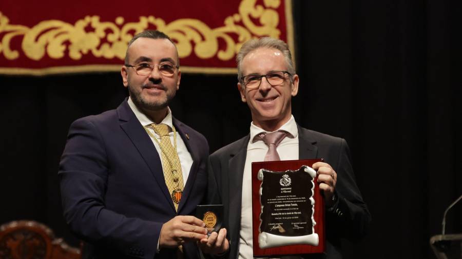 18/01/2026. VILA-REAL. En el Auditori Municipal Músic Rafael Beltrán Moner, acto de entrega de las medallas de oro de la ciudad, una de ellas a MEDITERRÁNEO, por su centenario. (Toni Losas / MED)