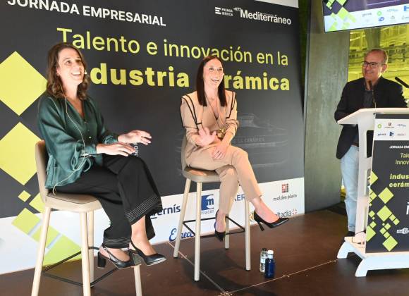 En el coloquio La narrativa familiar en la industria cerámica, moderada por el director del periódico, Ángel Báez, participaron la responsable de Administración y Fianzas de Moldes Plaza, Lidia Miguel, y la dircom y responsable de Ventas y Operaciones Estratégicas de Errecé, Laura Catalán.