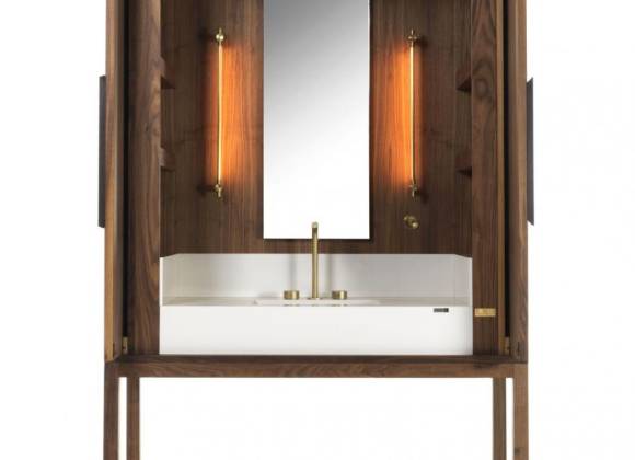 Según declara el propio Germani: “Cuando se trata de la cocina siempre encontramos soluciones de gran diseño, innovadoras e ingeniosas para ocultar y almacenar todo, pero no ocurre lo mismo en el caso del baño. Me di cuenta de que con el paso del tiempo el almacenamiento en el espacio del baño sigue siendo el mismo.”. Y de ahí surge DeKauri, de la posibilidad de crear un mueble independiente que sirva para albergar y, al mismo tiempo ocultar, el lavabo y el espacio de almacenaje.