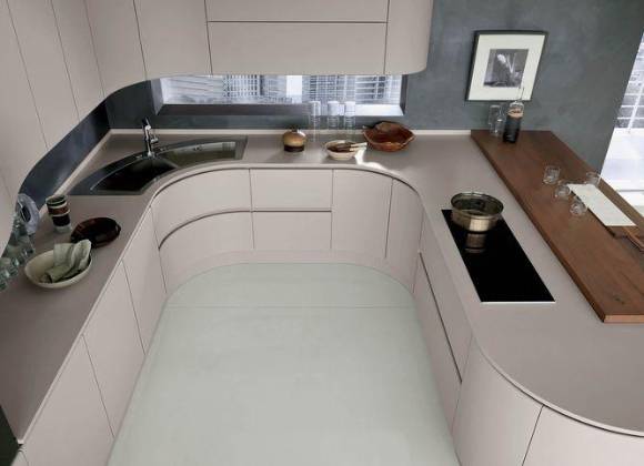 Superficies curvas y sin tiradores, fregaderos y placa vitrocerámica integrados, a lo que se suma una amplia península. Así es la nueva versión de la cocina Artika de la firma italiana Pedini realizada en HI-Macs, la piedra acrílica de última generación producida por LG Hausys. Este moderno y atractivo diseño se lanzará al mercado durante la celebración de la Feria International de Decoración (IMM) de Colonia, Alemania, que se celebrará entre los días 16 y 22 de enero de 2017.