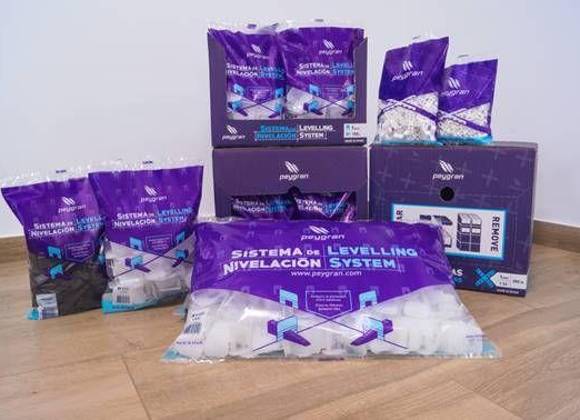 Entre la gama de productos para el sector de la construcción diseñados por la enseña, el Sistema de Nivelación Peygran, asegura la planeidad entre baldosas, evitando los movimientos durante el fraguado del mortero. Con ello se reducen los tiempos de colocación de la cerámica, consiguiendo un acabado perfecto y sin escalones. Resulta imprescindible para cerámica rectificada, porcelánicos, recubrimientos y grandes formatos. Reduce los tiempos de colocación y evita movimientos entre piezas debidos al fraguado del mortero.