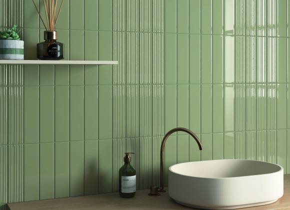 Isola, en formato 5x30 cm brillo y ocho colores, se inspira en la artesanía oriental y en la aplicación manual de esmaltes, donde el control del fuego genera variaciones cromáticas dentro de una misma gama. La vivacidad de sus piezas, la riqueza de matices y el contraste tonal definen una colección pensada para entornos sofisticados que buscan dinamismo y carácter.