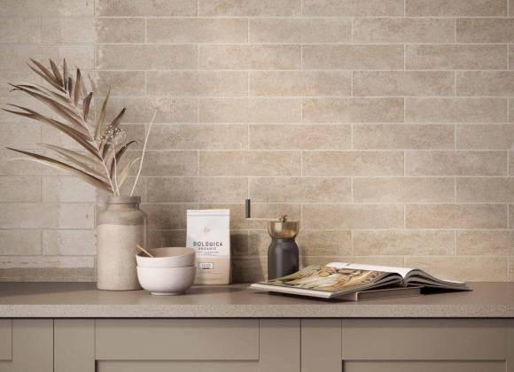 Fabricada en formato 7,7x30,5 cm, esta colección cerámica combina una base de tierra con esmaltes naturales en acabado brillo, lo que aporta una textura singular y una presencia estética singular. Su pequeño formato «permite crear composiciones dinámicas, jugando con la orientación de las piezas y la mezcla de tonos».